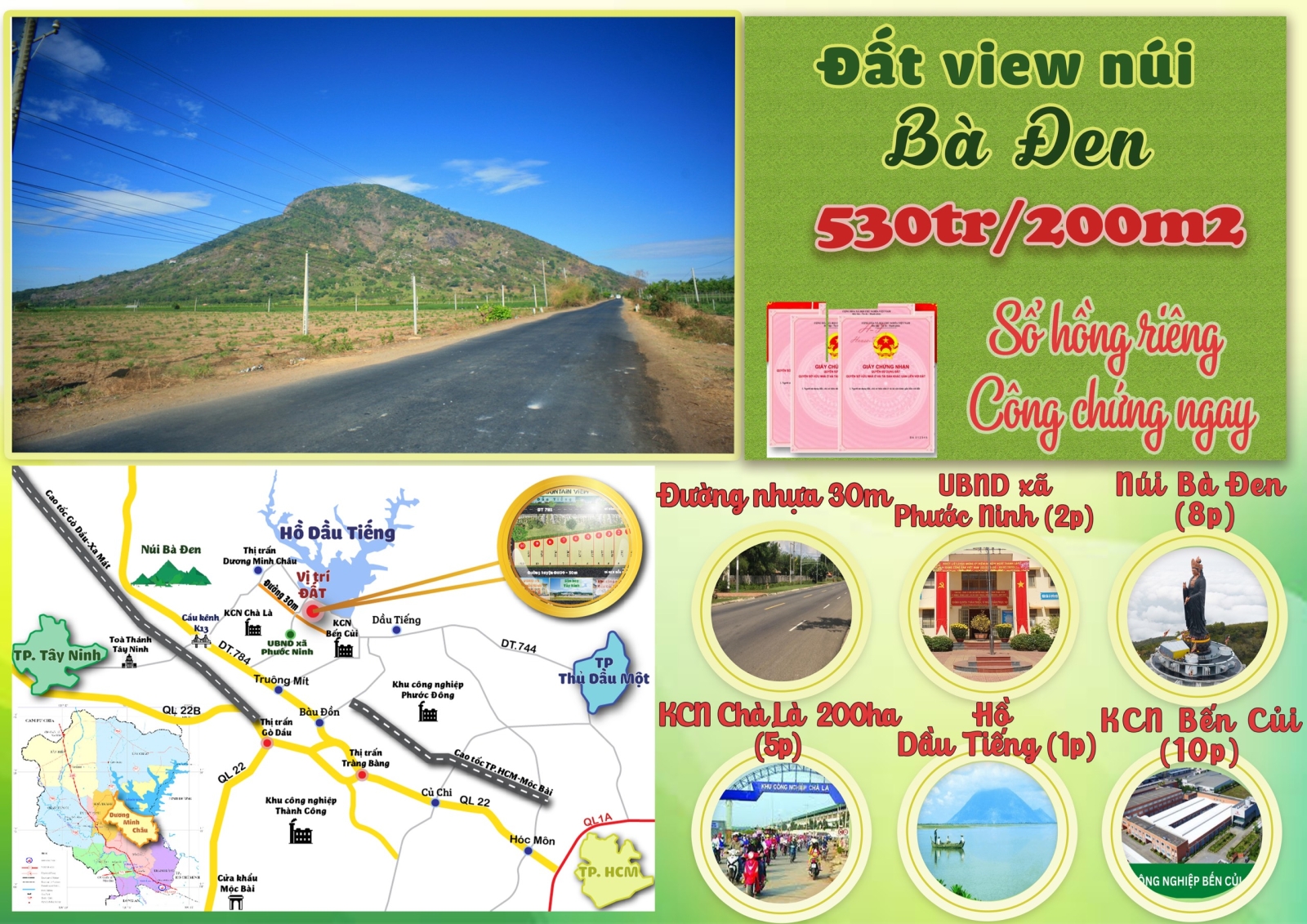 Từ đất đi về núi Bà Đen Tây Ninh tầm 15 phút di chuyển bằng đường bộ, đứng tại đất có thể nhìn thấy núi Bà Đen